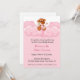 Baby girl shower invitation with cute baby monkey holding pink bottle sitting on fluffy pink clouds. Invitations are easy to customise and come complete with envelopes and your choice of paper.