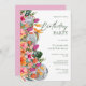 Pink Colorful Tropical Flowers Disco Ball Birthday Invitation