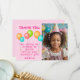 Pink Colourful Balloons Girl Birthday Photo Thank You Card