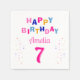 Pink Colourful Stars Girl Happy Birthday Party Napkins. This colourful and fun personalised birthday party napkin is perfect as a girl birthday party decor. Personalised the napkins with your name and age.