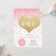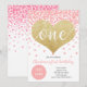 Pink Confetti Gold Heart ONE Girl First Birthday Invitation