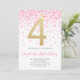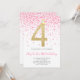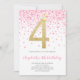 Pink Confetti Party Gold Number Girl 4th Birthday Invitation
