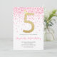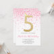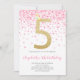 Pink Confetti Party Gold Number Girl 5th Birthday Invitation