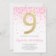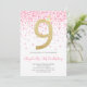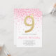 Pink Confetti Party Gold Number Girl 9th Birthday Invitation