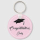 Pink Congratulations Graduation Cap keychain. Graduate name, graduation cap, modern white typography text Congratulations. Personalize with your name.