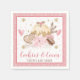 Celebrate a sweet winter baby shower with this charming Cookies & Cocoa themed party napkin in a soft blush pink palette. The design features a festive Christmas pudding, gingerbread heart cookie, macarons, winter poinsettia, pine sprigs, and scattered gold stars — a warm and whimsical touch for a cozy cold-weather celebration.