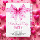 Pink coquette bow and hearts Valentine's Day party Invitation