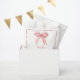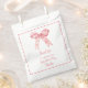 Pretty baby shower favour bag featuring a pink coquette bow ribbon. The words can be changed to suit your own details or requirements