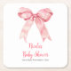 Pink Coquette Bow Baby Shower Square Paper Coaster