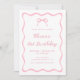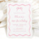 Celebrate in style with this Personalised Pink Coquette Bow Birthday Party Adult Invitation! Perfect for bow birthday party ideas, this design adds elegance to any bow themed birthday party. Set the tone for a chic bow party, whether it's a pink birthday party, pink themed birthday party, or pink sweet 16. Ideal for a coquette birthday party, this invitation brings a touch of charm to your coquette birthday celebration!