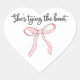 Pink Coquette Bow Bridal Shower Favour Heart Sticker