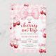 Pink Coquette Bow Cherry On Top Baby Shower Party Invitation