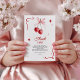 This coquette-inspired baby shower thank you card features two hand-painted watercolor cherries tied with a soft pink bow, framed by retro red starbursts and ribbon flourishes. A stylish way to send gratitude to family and friends, this card ties perfectly with the matching cherry baby shower invitation. The design combines a clean white background with elegant red typography, giving it a playful yet timeless look. Ideal for cherry-themed, girly, or coquette baby showers. All wording can be edited, making it easy to personalise your message of thanks.