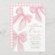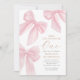 Celebrate your child's first birthday with this elegant pink watercolor bow themed invitation.