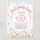 Pink Coquette Bow Wildflower 1st Birthday Girl's Invitation