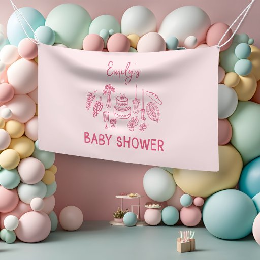 A Pink Coquette Modern Hand Drawn Baby Shower party decor sticker design typically blends whimsical, playful elements with a contemporary aesthetic. The size is a standard and popular choice, however other formats are available.