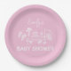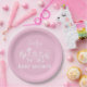 A Pink Coquette Modern Hand Drawn Baby Shower party decor paper plate design typically blends whimsical, playful elements with a contemporary aesthetic. The size is a standard and popular choice, however other formats are available.