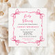 This cute and whimsical baby shower invitation features a cute pink ribbon frame. The text combines handwritten script and sans serif fonts for a stylish and modern look.