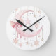 The Pink Coquette Round Clock is a charming addition to any nursery, bringing a touch of whimsy and delight to your little one's room. This adorable clock features a cute pink coquette, gracefully poised against a backdrop of a soft pink moon sprinkled with twinkling stars. Its gentle colour palette and enchanting design create a serene and magical atmosphere, perfect for a nursery setting. Not only is it an endearing decorative piece, but it also serves as a functional timekeeper, making it both beautiful and practical for her cosy space.
