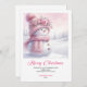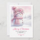 Celebrate the season with this cute watercolor pink coquette snowman kids Christmas card, set in a magical snowy forest. Editable text lets you personalize instantly, and the digital download provides an easy, fast, and festive holiday greeting.