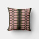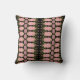 A throw pillow with a pink coral and olive green pattern. The black background can be changed to any colour to coordinate with your home decor.