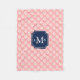 Pink Coral Reef Pattern and Blue Monogram Fleece Blanket