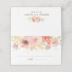 The design features watercolor coral pink flowers with gold leaves and branches. There's a line for the guest's name and table number. The text is completely customisable.