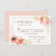 Pink Coral Rose and Gold Leaves Floral Wedding RSVP Card