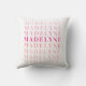 This personalised pillow features a modern typography design with pink and coral text. Customise the text with your name or other text.