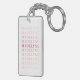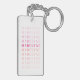 This personalised keychain features a modern typography design with pink and coral text. Customise the text with your name or other text.