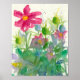 Pink Cosmos Nigella Watercolor Flower Painting Poster