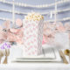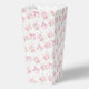 This sweet popcorn favour box features a pink cabbage roses in the background with a curved arch shape topped with a cute pink bow.