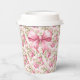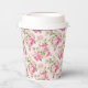 This paper cup design features a pretty shabby chic cottage pink rose patterned background.