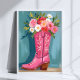 Pink Cowgirl Boot Flower Bouquet Watercolor Poster