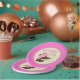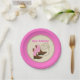 This child's birthday party paper plate features a western theme designed specifically for a girl. The background is bright pink with a rope border and is accented with a pair of pink cowgirl boots. Rope style text reads: Bet 'yet boot!