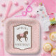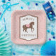 This cowgirl birthday plate design features a rope border with a personalised label. In the centre of the label is a horse with the words "8th birthday". The background is a pink bandanna pattern. You can personalise with a name and date. The perfect way to dress up your table for your cowgirl party. YeeHaw!
