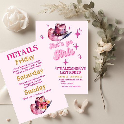 Saddle up and round up your girls for an unforgettable Nashville-style bachelorette party with our Pink Cowgirl Nashville 'Let's Go Girls' Bachelorette Invitation. This invitation sets the tone for a country chic adventure and marks the start of unforgettable memories.