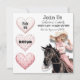 Retro blush pink cowgirl in beige hat riding a horse with a big hat and cute pink scarf. Customise this invitation with all of your Galentine's Day party information.