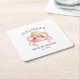 Pink Crab Navy Blue Script Coastal Beach House Square Paper Coaster