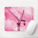 a dramatic pink photo of a tower crane against a cloudy summer sky.
