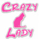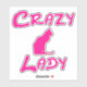 Pink Crazy Cat lady sticker with cat silhouette.