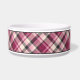 Lovely plaid pattern in pink, cream and dark grey colour scheme. There is also an oval shape banner that has a personalizable text area for the name of the pet. The font is a nice script font in dark grey colour.