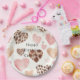 Pink Cream Animal Hearts Gold Sparkle Birthday Paper Plate