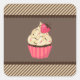 Pink Cream Brown Stripes Strawberry Cupcake Square Sticker