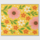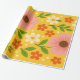 Pink, cream & Orange Flowers with Green Leaves Wrapping Paper