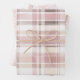 Pink Cream Plaid Stripes Snowflakes Christmas Wrapping Paper Sheet