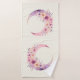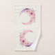 Towel set with a lovely illustration featuring a soft pink and purple crescent moon. Pretty pink and yellow wildflowers adorn this celestial body.
