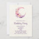Pink Crescent Moon with Pretty Flowers Birthday Invitation