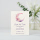 Pink Crescent Moon with Pretty Flowers Wedding Announcement Postcard