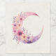 Bottle labels with a lovely illustration featuring a soft pink and purple crescent moon. Pretty pink and yellow wildflowers adorn this celestial body.
